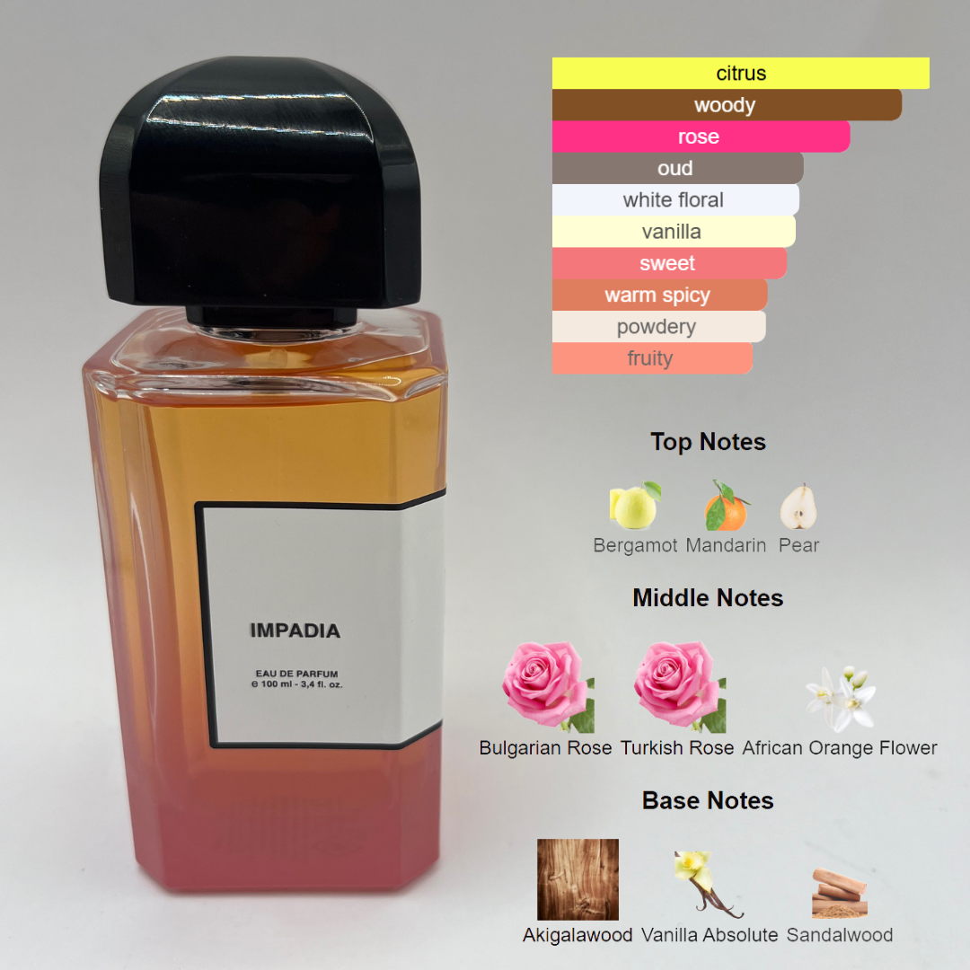 Middle Notes: Bulgarian Rose, Turkish Rose, African Orange Flower