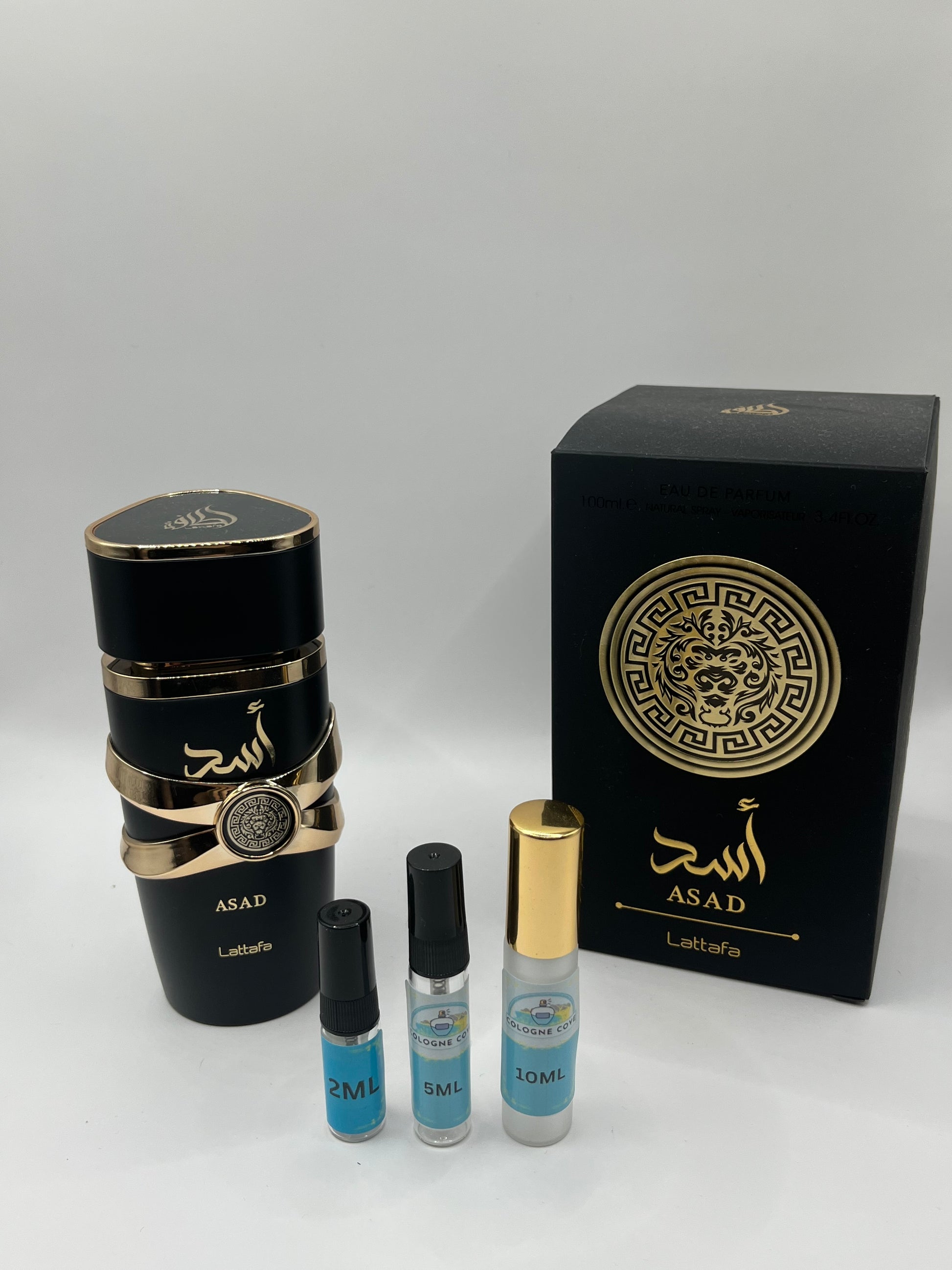 Command attention with Lattafa Asad in our premium sample decant sizes. This bold fragrance blends spicy notes and clove with warm vanilla, smooth amber, and creamy sandalwood. A powerful and long-lasting scent that embodies confidence and strength.