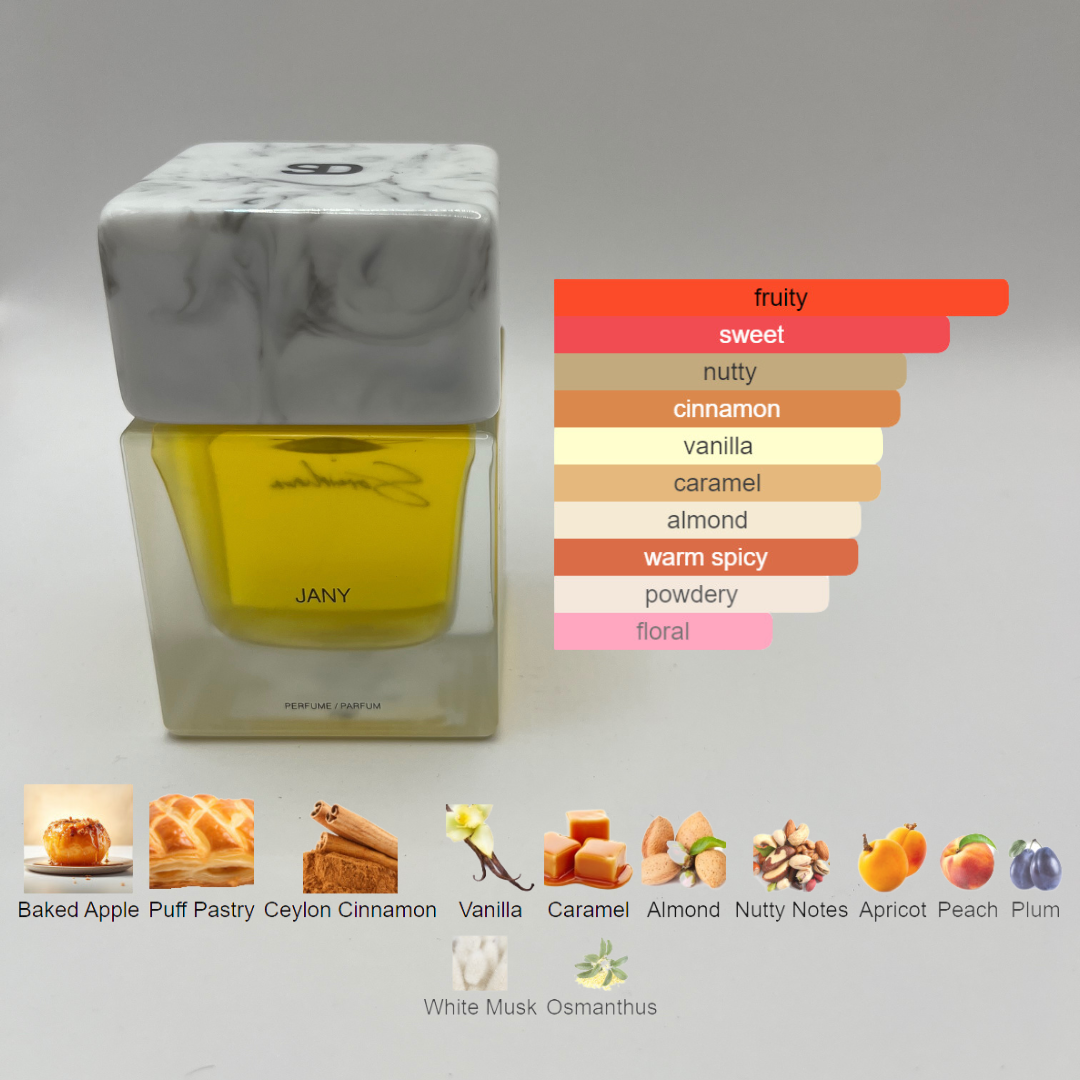 Notes: Baked Apple, Puff Pastry, Ceylon Cinnamon, Vanilla, Caramel, Almond, Nutty Notes, Apricot, Peach, Plum, White Musk, Osmanthus